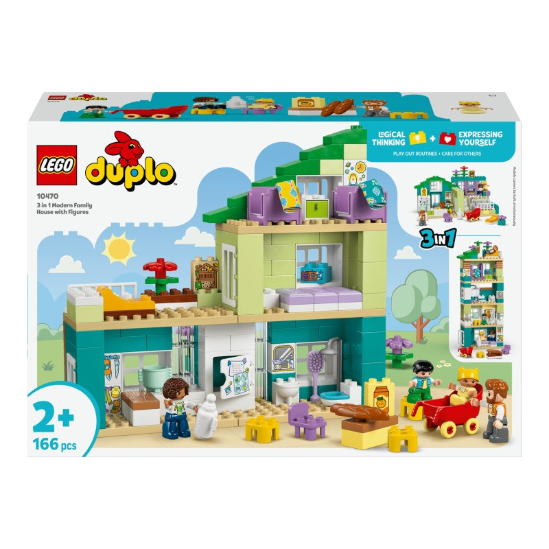 LEGO Duplo 10470 Moderný rodinný dom 3 v 1 s figúrkami, Parametre: Vek dieťaťa: od 2 rokov, Značka: LEGO, Pohlavie: chlapci, dievčatá, Séria: domácnosť, Počet kusov: 166