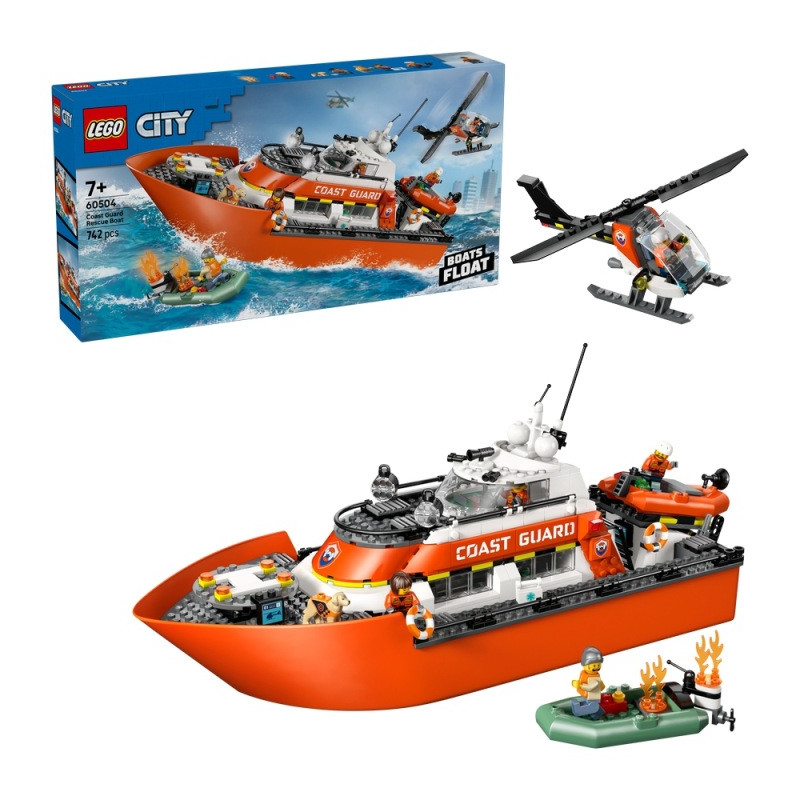 LEGO City 60504 Loď a vrtuľník pobrežnej stráže, Parametre: Vek dieťaťa: od 7 rokov, Značka: LEGO, Pohlavie: chlapci, dievčatá, unisex, Séria: hasiči, Počet kusov: 742