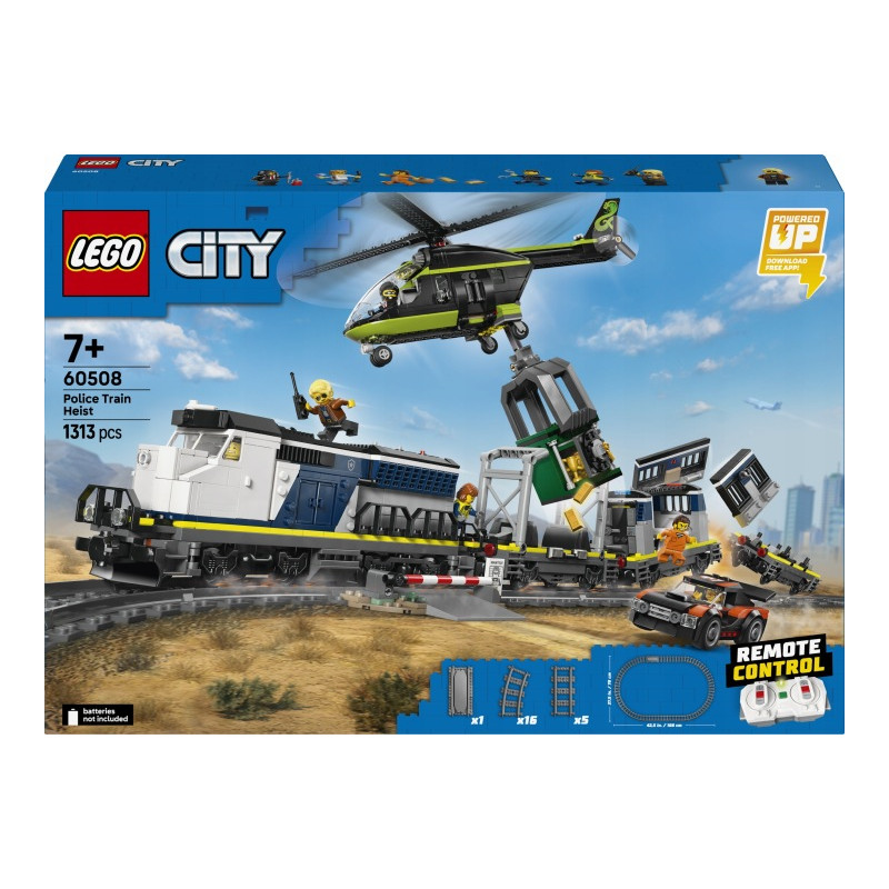 LEGO City 60508 Lúpež v policajnom vlaku, Parametre: Vek dieťaťa: od 7 rokov, Značka: LEGO, Pohlavie: chlapci, dievčatá, unisex, Séria: vlak, Počet kusov: 1313