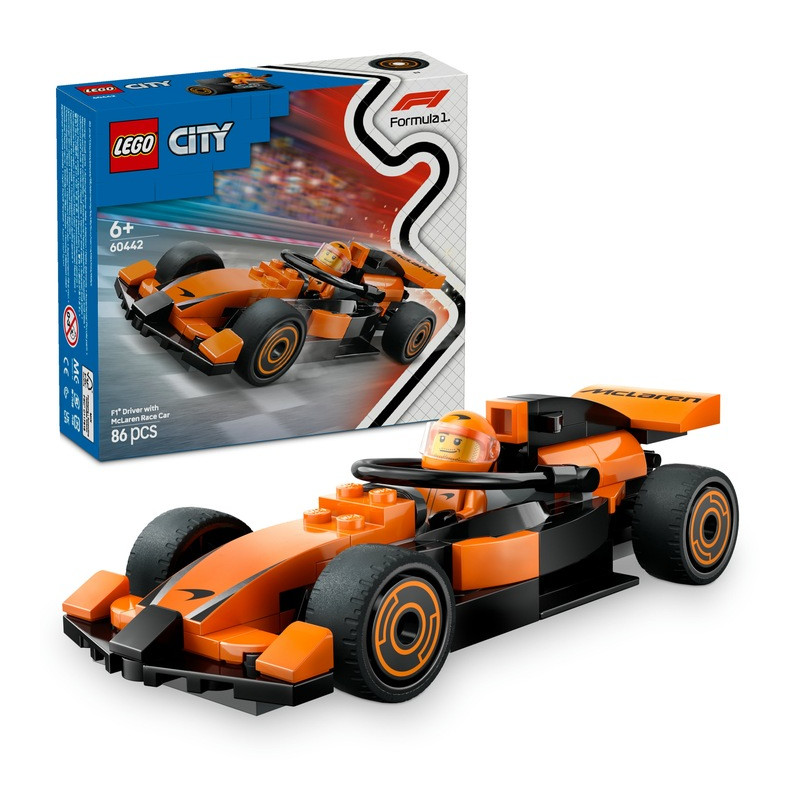 LEGO City F1 Jazdec a pretekárske auto McLaren 60442, Parametre: Vek dieťaťa: 6+ rokov, Značka: LEGO, Pohlavie: chlapci, dievčatá, Séria: mesto, Počet kusov: 86
