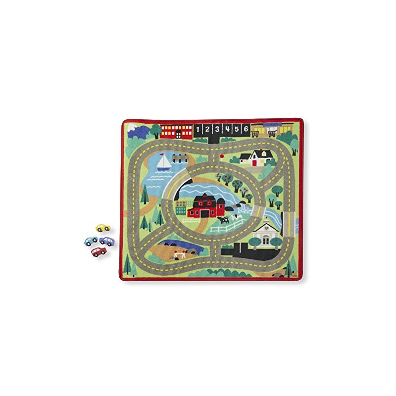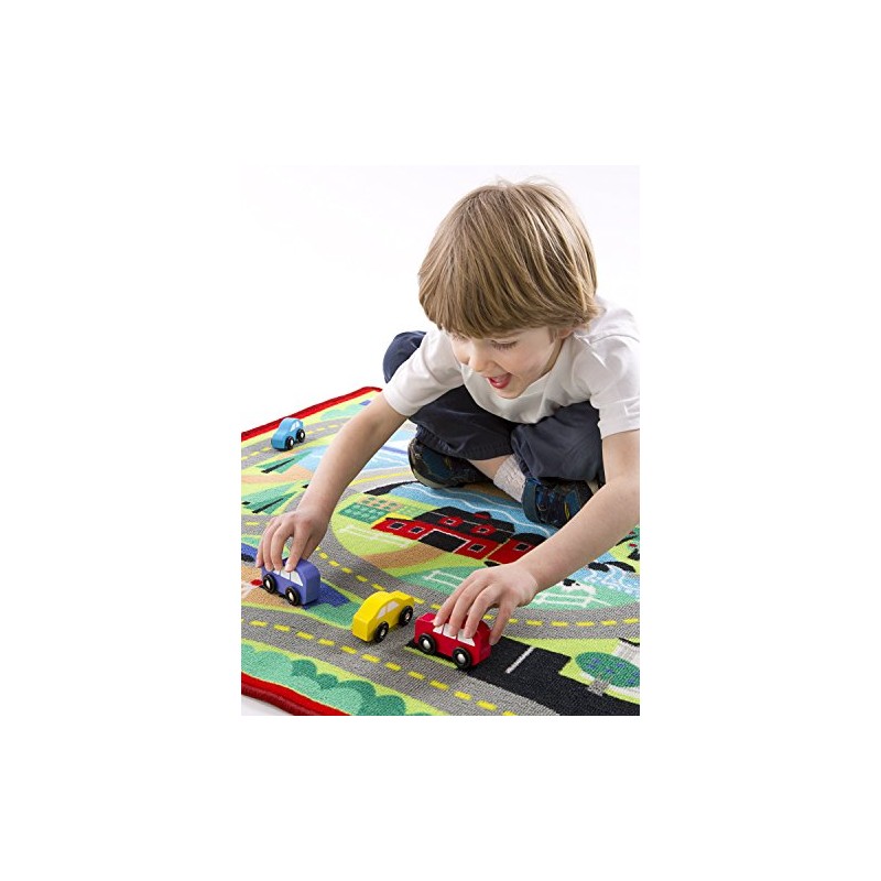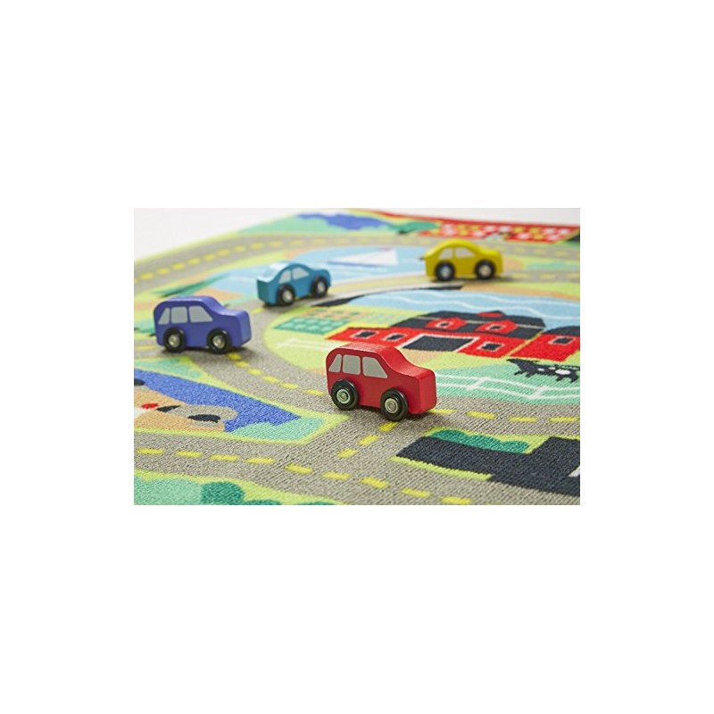 Melissa & Doug Round the Town Road Rug and Car Activity Play Set With 4 Wooden Cars (99 x 91.5 cm)