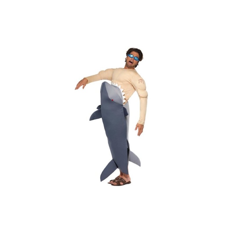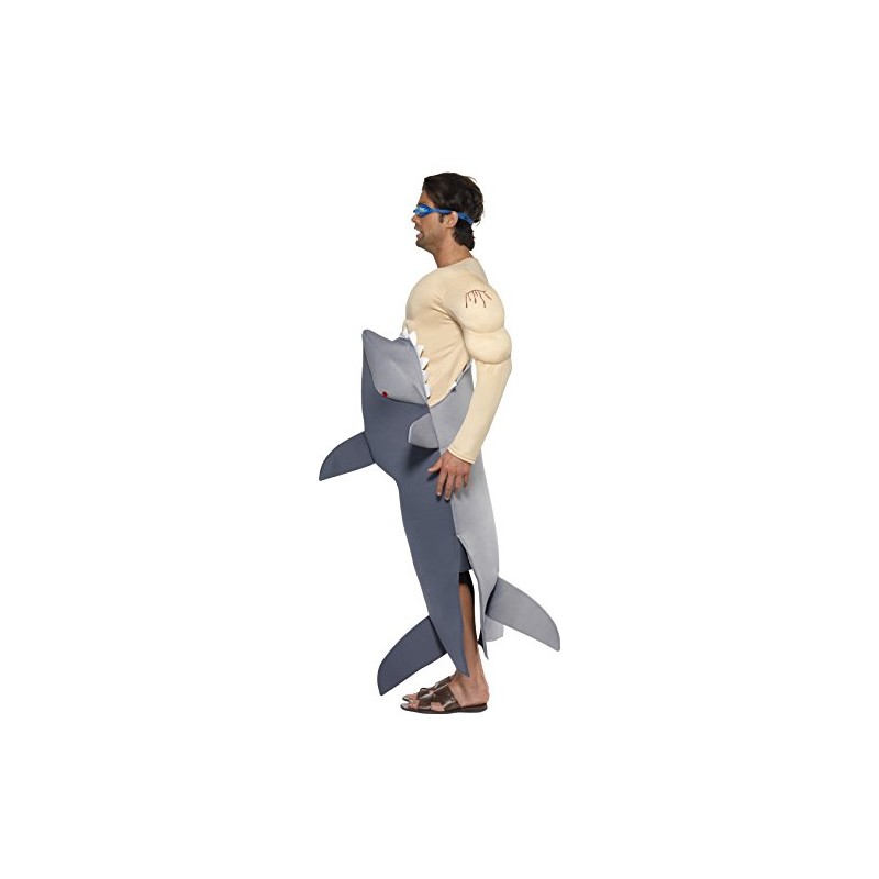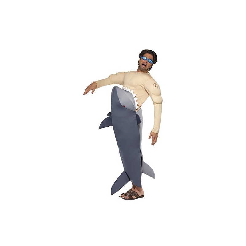 Smiffy's Adult Men's Man Eating Shark Costume, Shark Bodysuit and Goggles, Funny Side, Serious Fun, One Size, 36378
