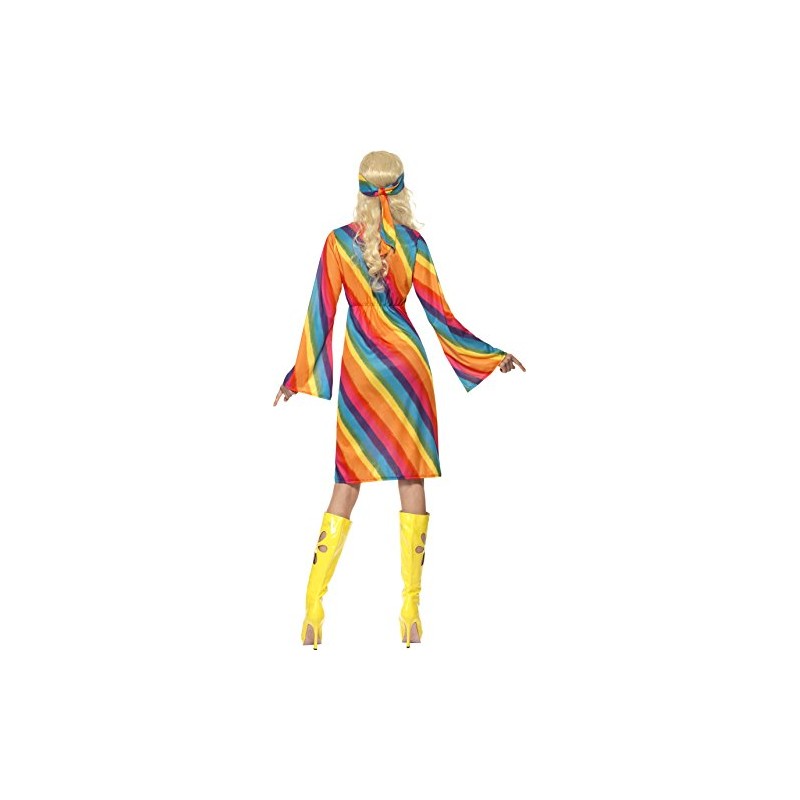 Smiffy's Adult Women's Rainbow Hippie Costume, Dress and Headband, 70's Disco, Serious Fun, Size