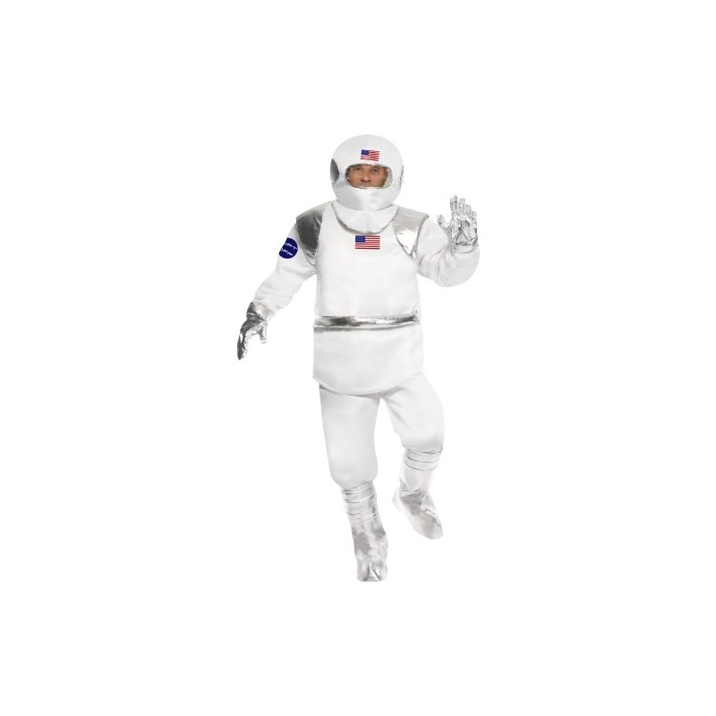 Smiffy's Adult Men's Spaceman Costume, Top, trousers, Helmet, Gloves and Shoe Covers, Icons and Idols, Serious Fun, Size M, 21103